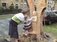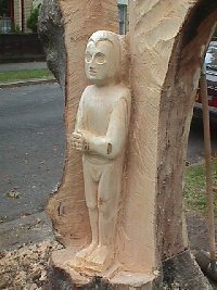 "Looking at the face today... I want to give it features not dissimilar to a Buddha figure I once saw in Thailand. I like the idea of mixing East and West, and also the serenity of the Buddha seems appropriate. I'm having problems with the eyes. I think I've taken too much off in certain places and have to compensate by carving more deeply in and around the bridge of the nose. The eyes are always a problem. They'll probably remain closed." Kevin Storch |