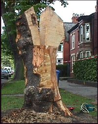 Kevin will use his chainsaw, an adze and a chisel to chip out rotten bits of wood, and to start forming the shapes of the three figures