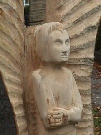 "It's been raining quite heavily for the past day or two, so the angel is damp and needs to dry out before I can apply some preservative. The wood is starting to crack."