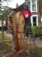 "I'm painting the angel with preservative, and hope we don't get any more rain for a while." Kevin Storch