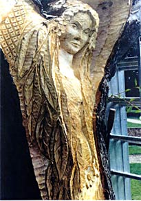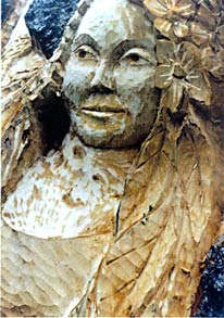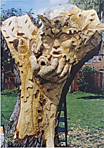 Jacky sculpted this tree in Hessle, in the grounds of a school. The Green Man and Woman symbolise the spirit of regeneration