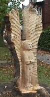 Can they agree?On Thursday night, 16 Sept 99, at 8.30 pm on Radio Humberside, interview with Kevin Storch and Stephanie Wilson (Chair of the Avenues Residents' Association)! Stephanie is supportive of Kevin's wish to create a piece of art - whether it's modern or traditional. Kevin welcomes all reaction to his art, but would like people to judge the final result, which will not necessarily look like the "mock-up" he produces as a guide. The original plan for the stump in Marlborough Avenue was a family group - but, as you see, the Angel appeared